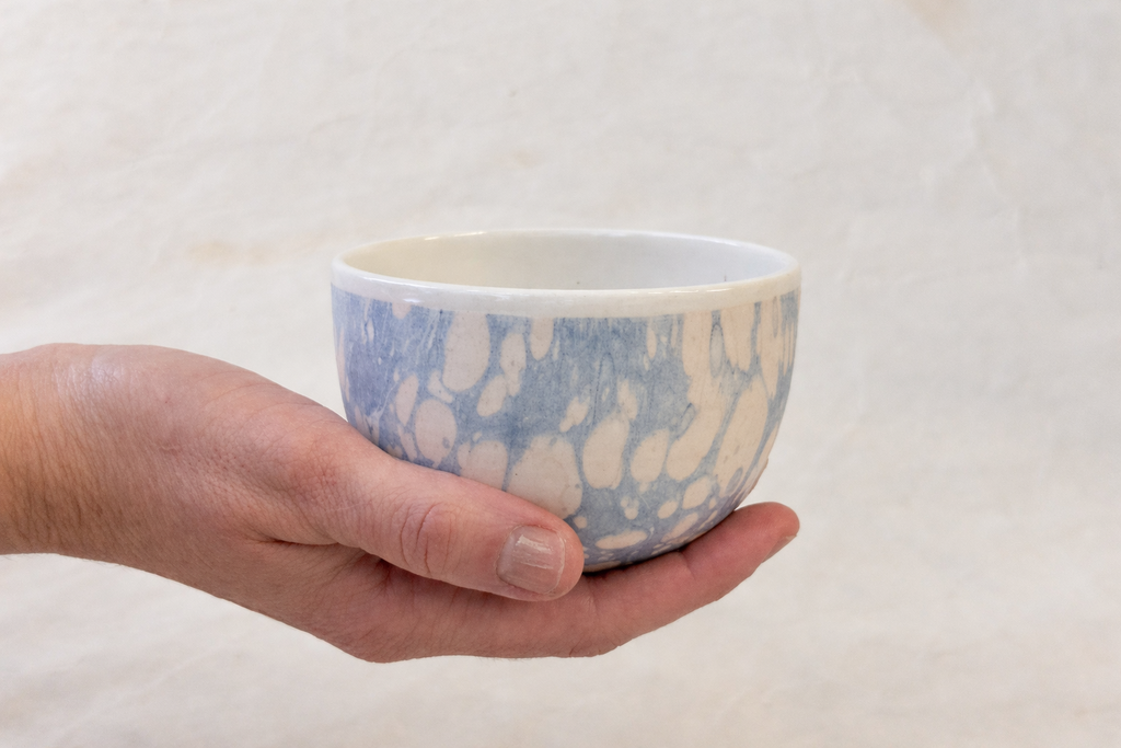 This marbling ceramic cup, handmade on the potter's wheel, is a collab between Catherine (Feuilles reliure artisanale) & Parceline. The marbled decor is the result of a lot of research and collaboration between the 2 montreal artists.